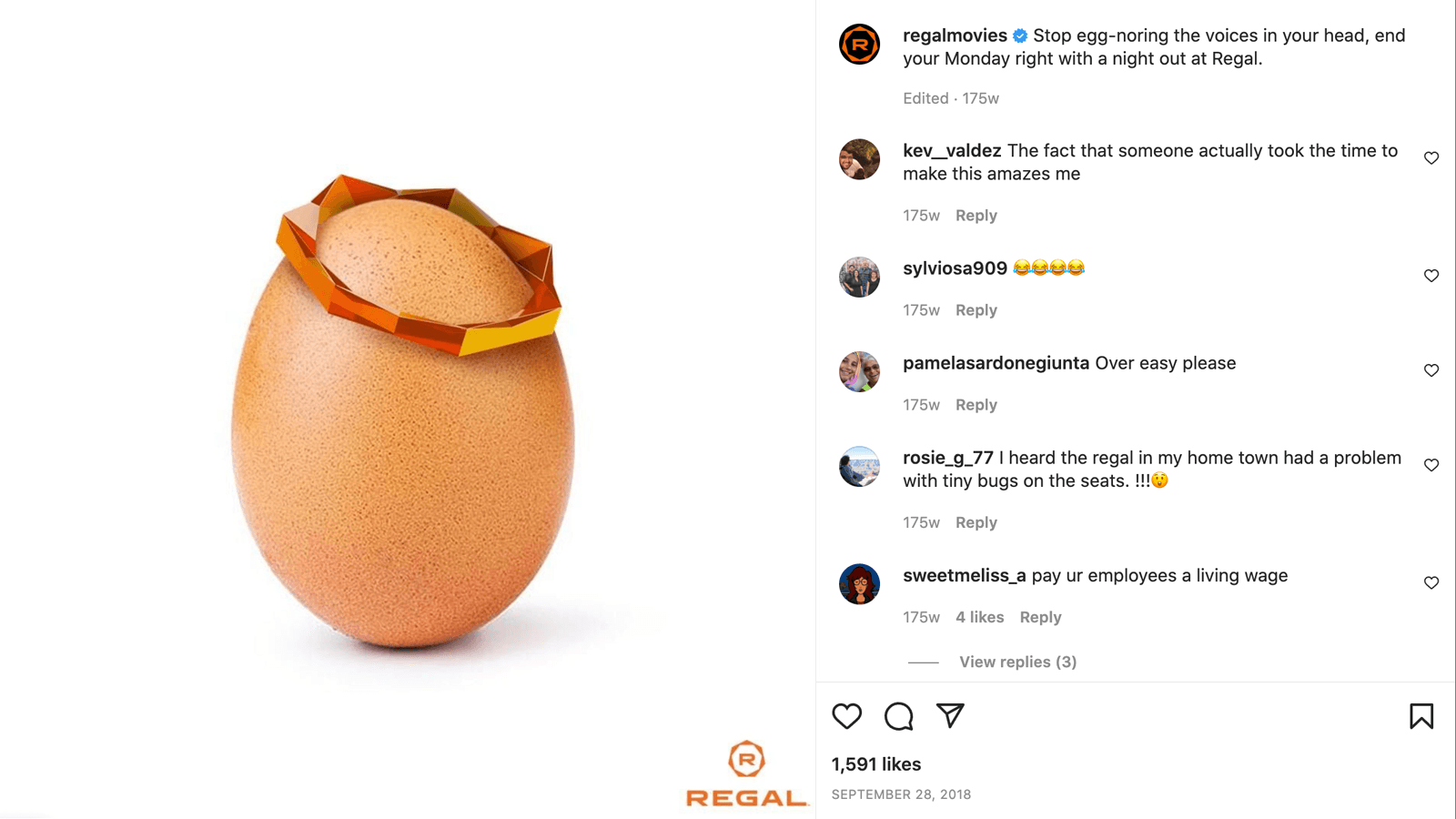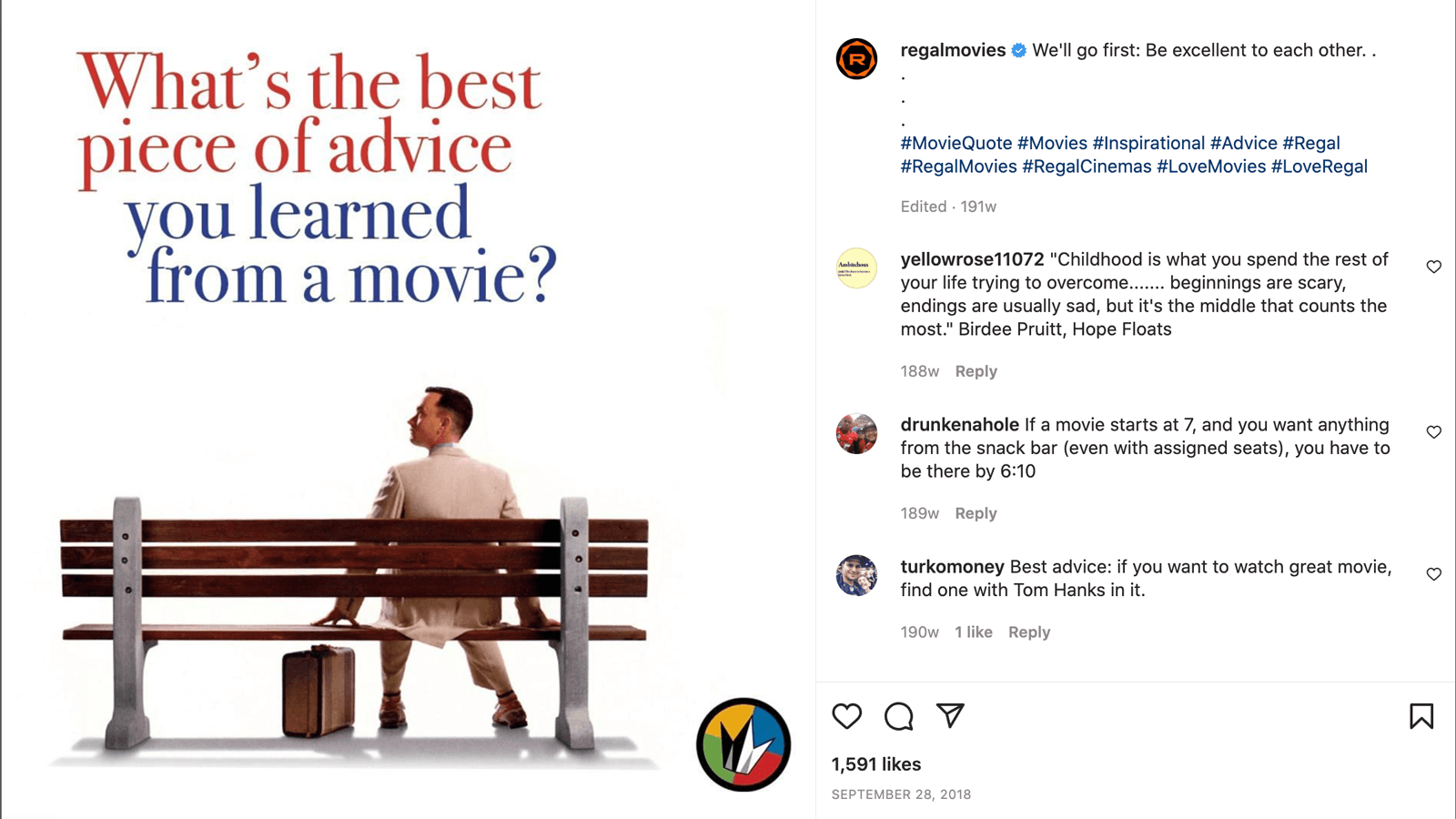 I led the creative production for Regal Cinema's social channels from 2017-2019. The sheer volume of content that we cranked out while remaining nimble enough to capitalize current trends and memes was thrilling.